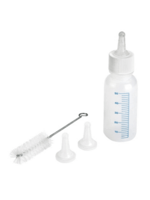 Биберон Kerbl Nursing Kit, се използва при захранване на малкото коте или куче, което по някаква причина не може да суче директно от майката. Шишето е с вместимост от 50 мл, от мека пластмаса и е снабдено със скала през 5 мл за по-добро измерване. Бибероните са 3 броя от силикон. Комплекта включва и четчица за по-лесно измиване.