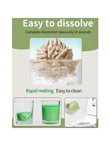 Произведена изцяло от растителни хранителни продукти – соя, което я прави абсолютно безвредна за Вашия домашен любимец и околната среда. Изключително добър контрол над миризмите. Абсорбира отлично, оформените бучки се получават от вложените изцяло растителни продукти. Тоалетната е водоразтворима, така че оформилите се бучки могат да бъдат изхвърляни без проблем в канализацията.