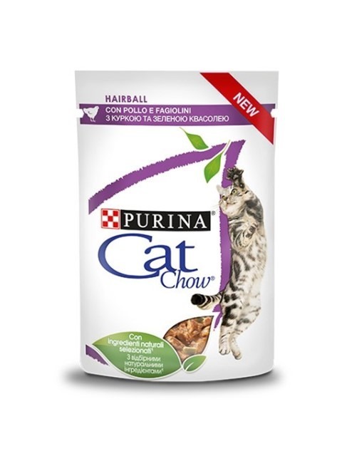 Пауч за котки – Cat Chow Pouch Adult Hairball – Пиле и зелен фасул в сос 85 гр