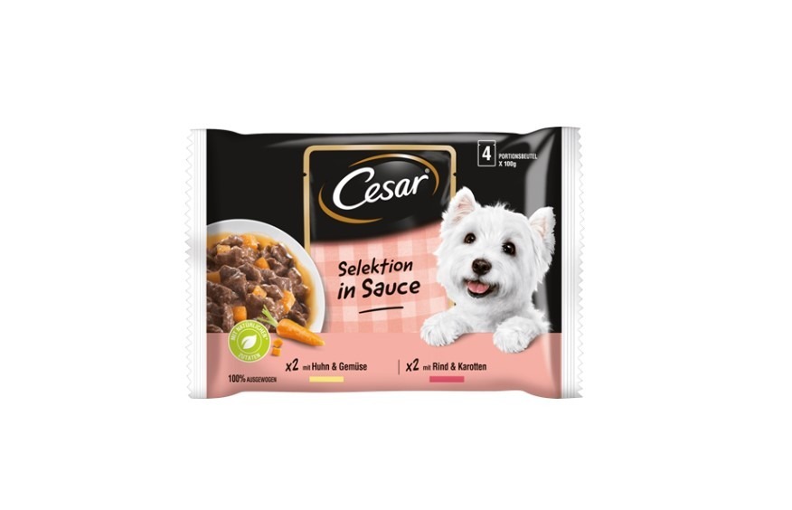 Паучове за куче – Cesar Selektion Dog, Говеждо и пилешко с зеленчуци в сос – 4х100 гр