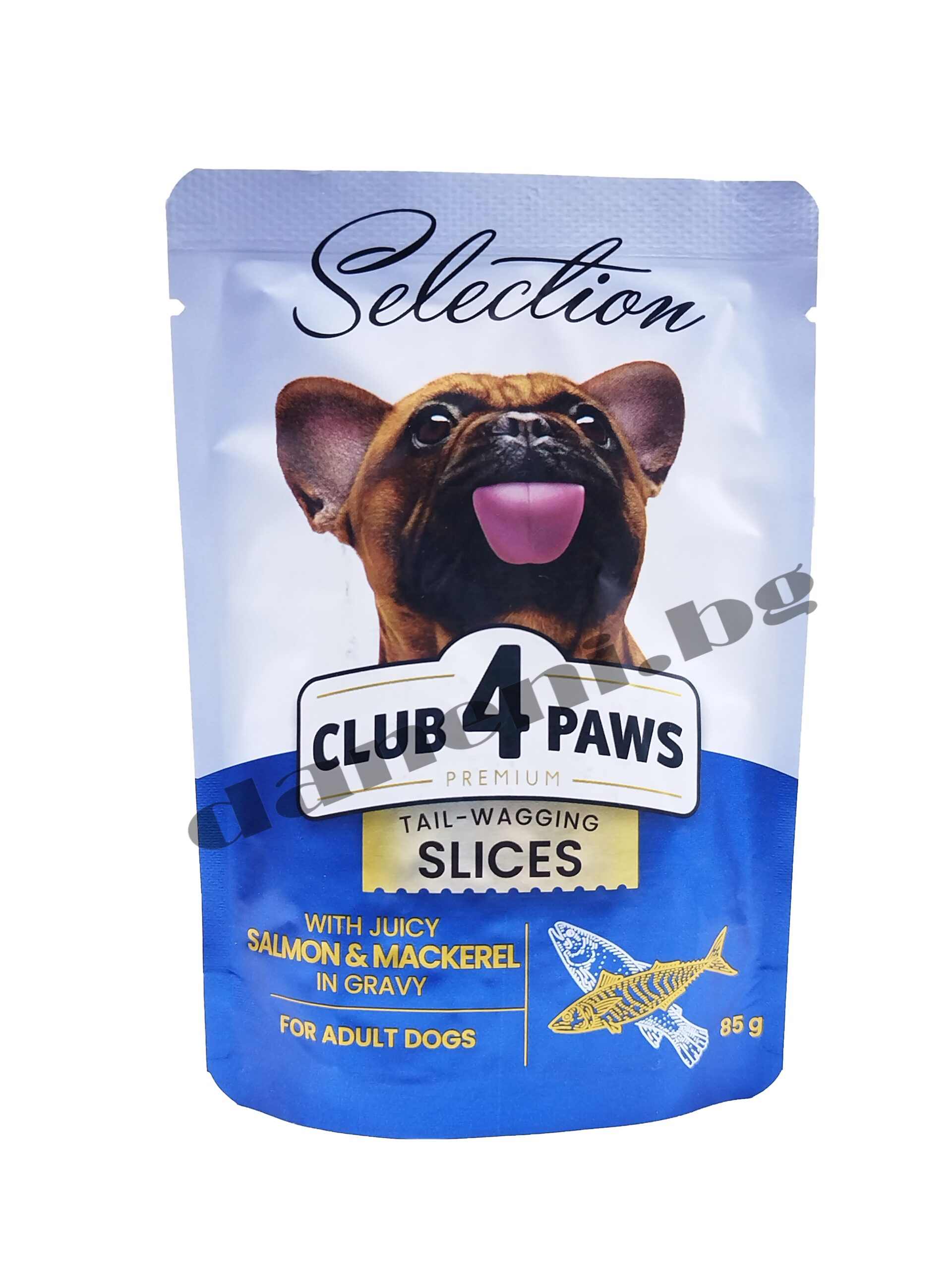 Club 4 Paws Premium Dog Adult Pouch – Пауч за куче – Сьомга и скумрия в сос, 85 гр.