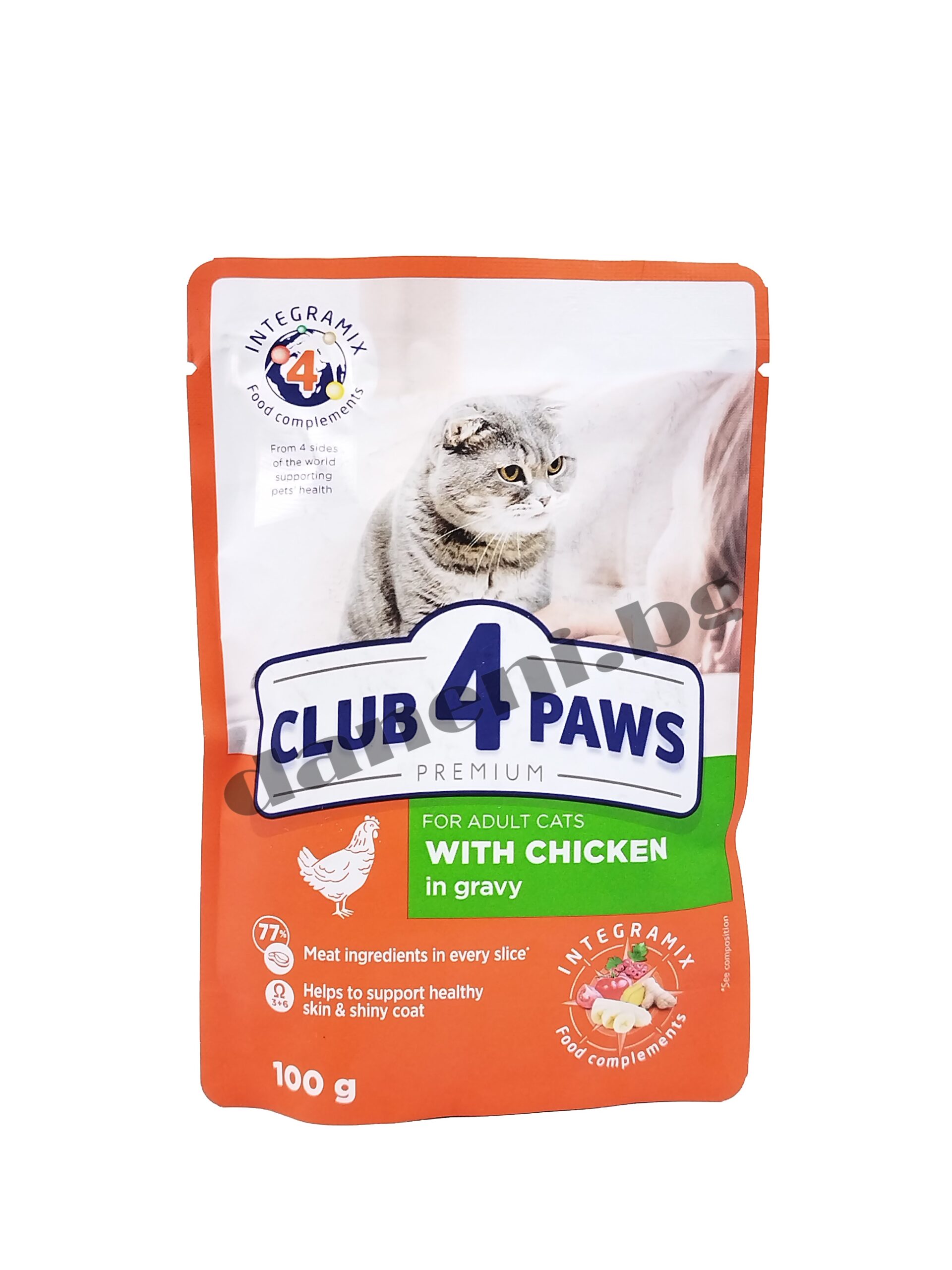 Club 4 Paws Premium Adult Cat – Котешка храна – Пиле в деликатен сос, 85 гр