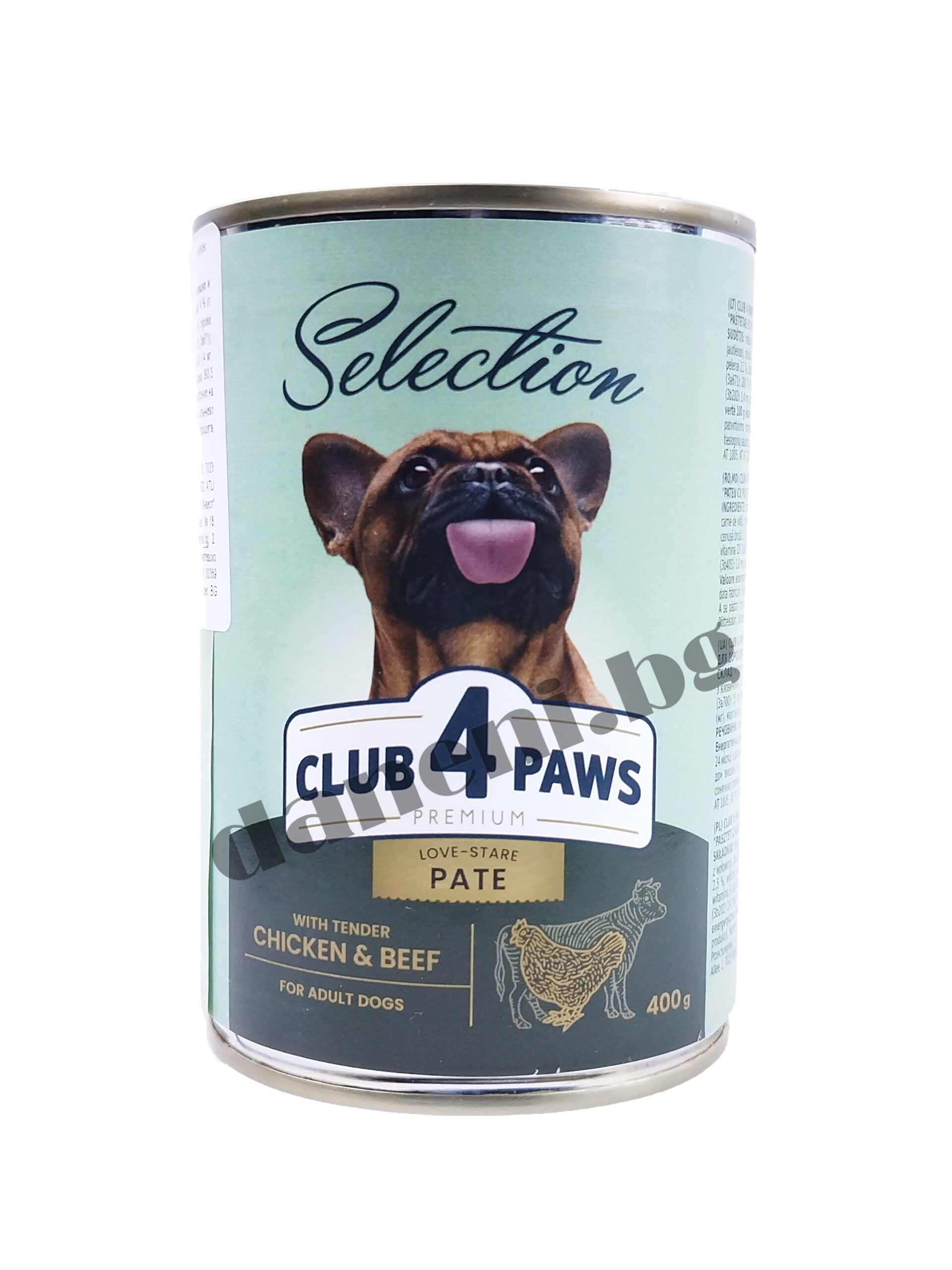 Club 4 Paws Premium Dog Adult – Консервирана храна за куче – Пастет с пилешко и телешко, 400 гр