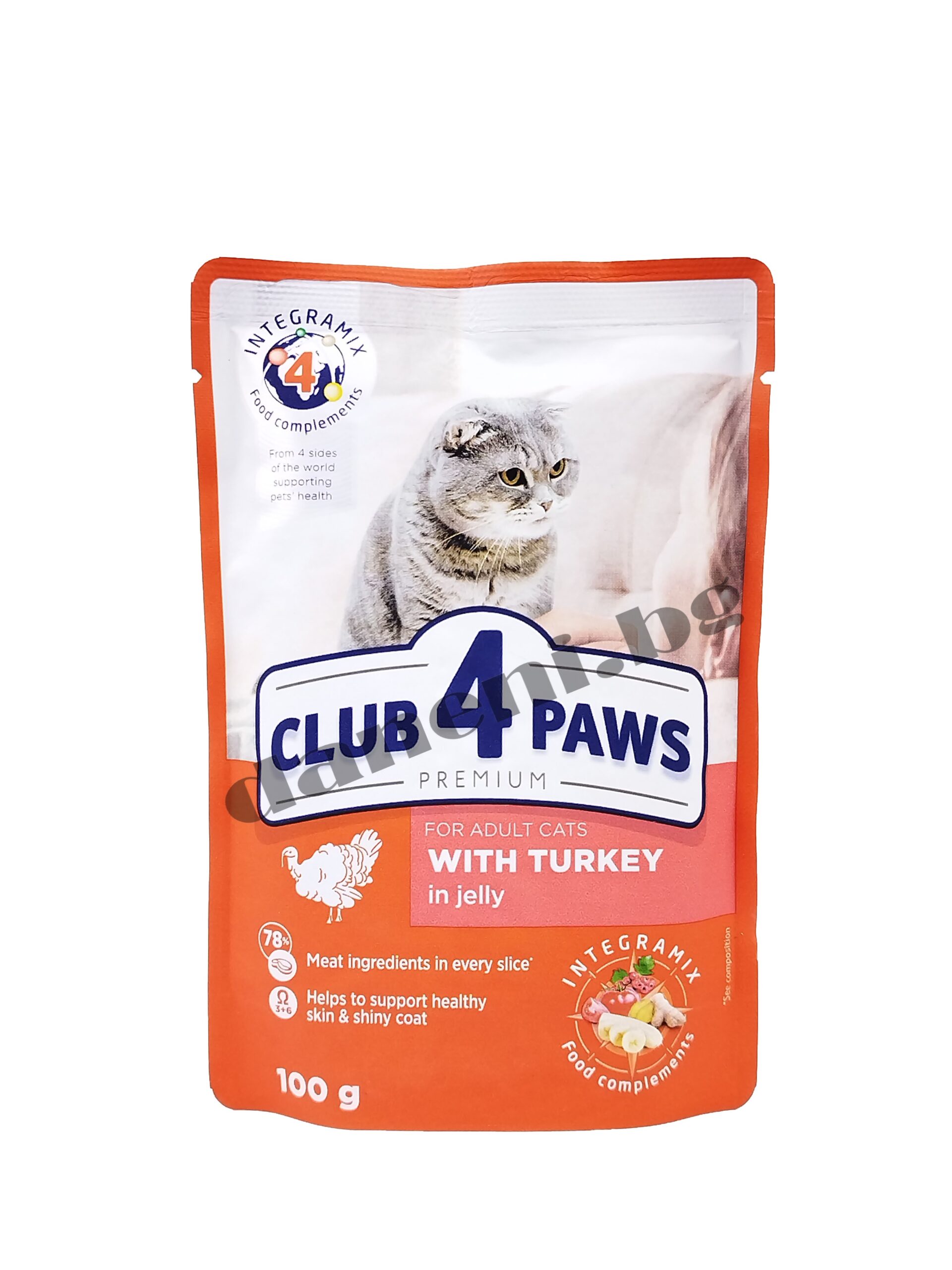 Club 4 Paws Premium Pouch - Пълноценна мокра храна с пуешко в сочно желе за възрастни котки.
