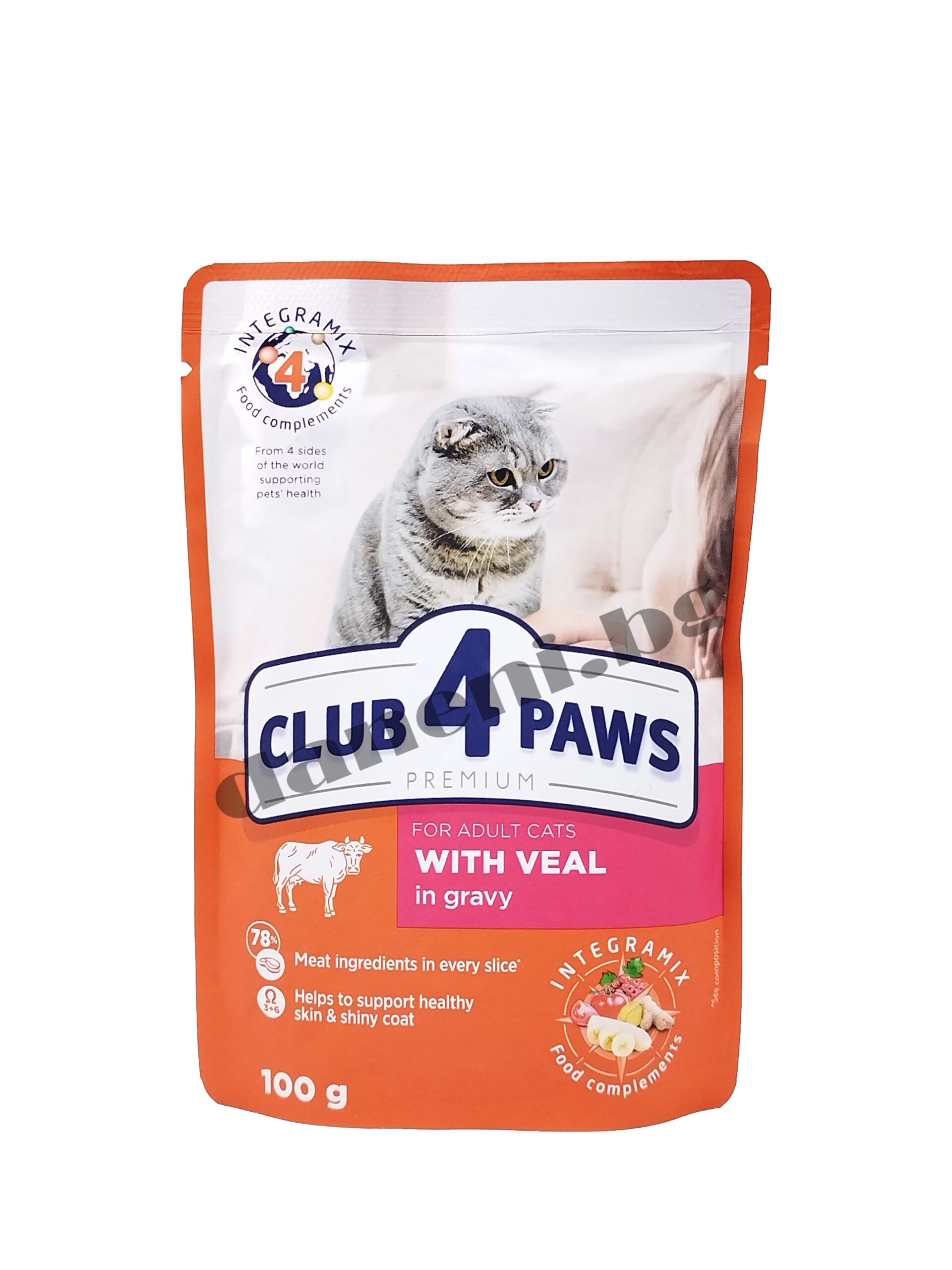 Club 4 Paws Premium Pouch Adult Cat – Пауч за израснала котка – сочно телешко в сос, 100 гр