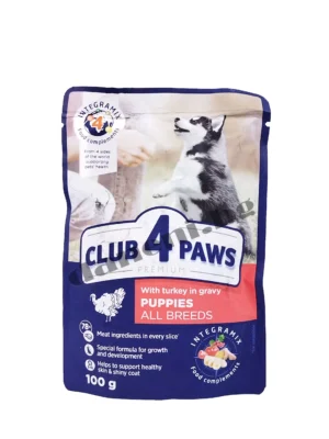 Club 4 Paws Premium Pouch Puppies Dog All Breeds – Пауч за кучета – Пуешко в сос, 100 гр