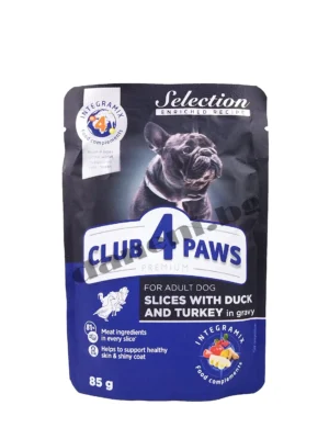 Club 4 Paws Premium Adult Dog Selection – Пауч за куче – Патица и пуйка в сос, 85 гр