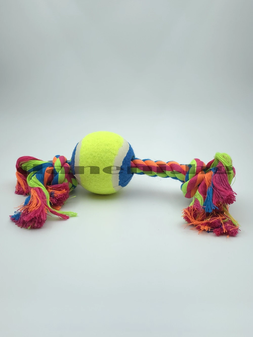 • Издръжливи материали: Изработена от качествено памучно въже и здрава тенис топка.