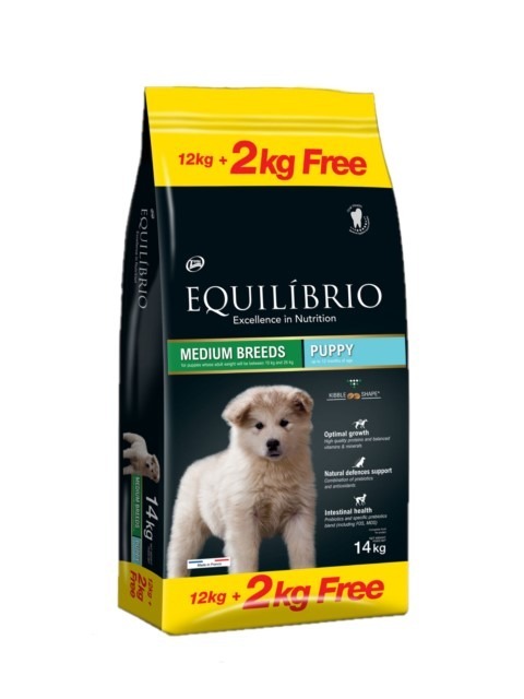 Equilibrio Puppy Medium Breeds – Пълноценна храна за подрастващи кучета от средни породи, 14 кг