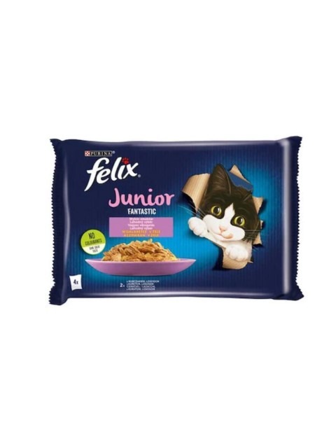 Пълноценна храна за малки котета. Felix® Fantastic® Junior предлага гама от неустоими храни с апетитен вид, мирис и вкус, сякаш сте готови! Всяка рецепта съдържа меки закуски в сочни трепетлики, на които вашето котенце няма да може да устои! През първата година от живота си котетата се нуждаят от специална храна. По този начин всички храни са специално проектирани да отговарят на нуждите на вашите мъркащи любимци, за да задоволят 100% от ежедневните хранителни нужди на вашето коте. Протеините и витамините допринасят за развитието на силни мускули, кости и зъби.