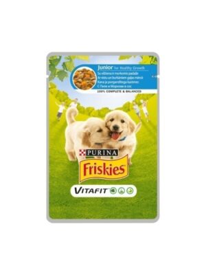 Пауч за подрастващи кучета – Friskies Junior Pouch с пилешко и моркови 100 гр