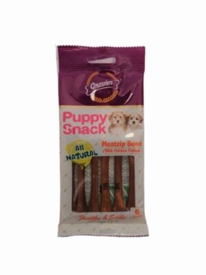 Gnawlers Puppy Snack Meatzip Bone – Дентално лакомство за подрастващо куче с пилешки вкус 8 см 6 бр