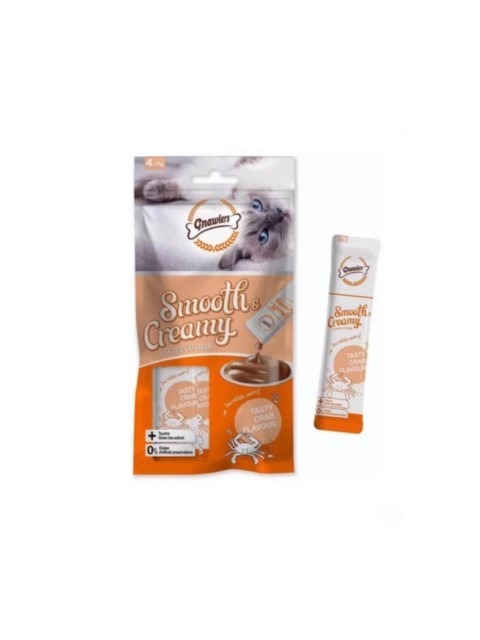 Gnawlers Smooth Creamy Treat са котешки лакомства с морски рак, те съдържат таурин който подобрява зрението. Мастни киселини като Омега 6, които подобряват кожата и козината.