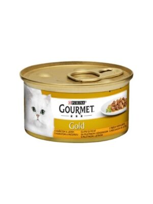 Мокра храна за котки Gourmet gold, хапки в сос с пиле и черен дроб. Висококачествени съставки, приготвени внимателно за страхотно гурме преживяване.