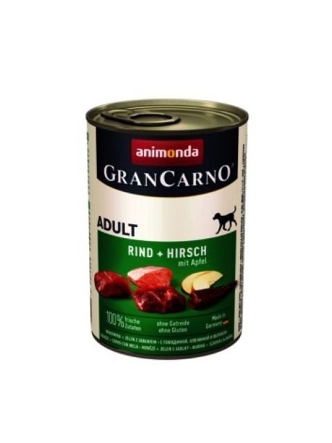 GranCarno Adult – Мокра храна за кучета с говеждо месо, еленско месо и ябълки 400 гр