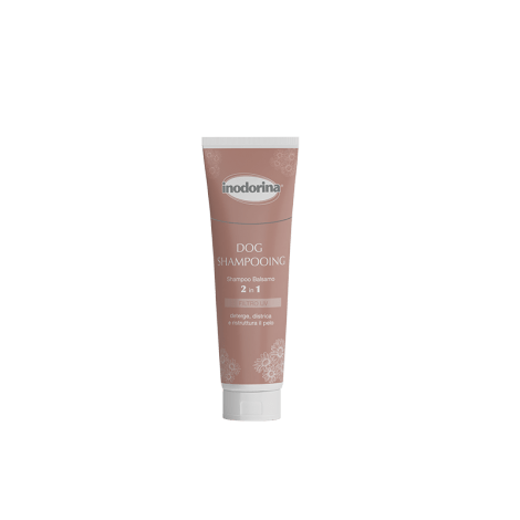 Шампоанът за кучета Inodorina, 2 в 1 почиства дълбоко козината, както и я прави мека и лесна за разресване. Екстрактът от лайка реструктурира козината, като я оставя ярка и ревитализирана. Неговото двойно почистващо-разглобяващо действие също помага на собственика и кучето, спестявайки време и пране.