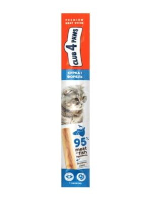 Club 4 Paws Premium Stick – Лакомство за котки – пилешко месо и пъстърва 95%, 5 гр