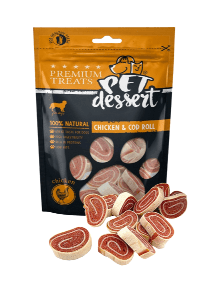 Pet’s Dessert – Лакомство за кучета – Рулца с пилешко месо и риба треска 80 гр