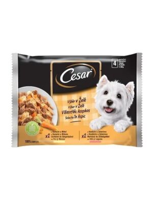 Cesar Selezione in Gelatina Adult Dog Pouch – Паучове за куче – Говеждо и пиле с зеленчуци в желе 4 х100 гр