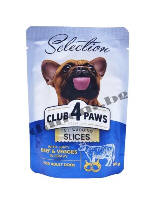 Club 4 Paws Premium Dog Adult Pouch – Пауч за кучета – Телешко и зеленчуци в сос, 85 гр