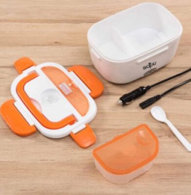 Благодарение на тази практична кутия за обяд няма да се нуждаете от използване на микровълнова, за да имате вкусно, топло домашно ястие. Тази електрическа кутия за обяд е много лесна за използване. Просто я свържете към мрежата и тя ще е готова. Насладете се на вкусно ястие навсякъде и по всяко време благодарение на тези невероятна електрическа кутия за обяд! Кутията е с модерен и функционален дизайн. Тя е лека и лесна за използване, почистване и пренасяне благодарение на удобната си дръжка. Капакът е с четири затварящи елемента, клапан за пара и отделение за прибори (включена пластмасова лъжичка). Тази многофункционална кутия за обяд е с две независими отделения. Може да се използва като обикновена кутия за обяд за студена и топла храна, за затопляне на ястия или за поддържане на температурата. Иновативната система за затопляне с инфрачервени лъчи предоставя бързо топлене и спестява енергия. Включен подвижен захранващ кабел.