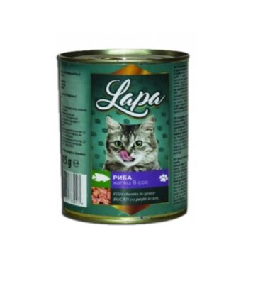 Пълноценна консервирана храна Lapa, с риба и хапки в сос за котки в зряла възраст от всички породи.