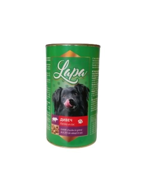 Консерва за кучета Lapa Dog Adult – Дивеч на хапки в сос 1250 гр