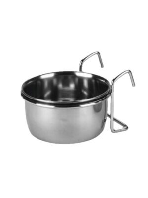 Хранилката е направена от неръждаема стомана, проектирана със специален държач. Подходяща е за храна и вода.