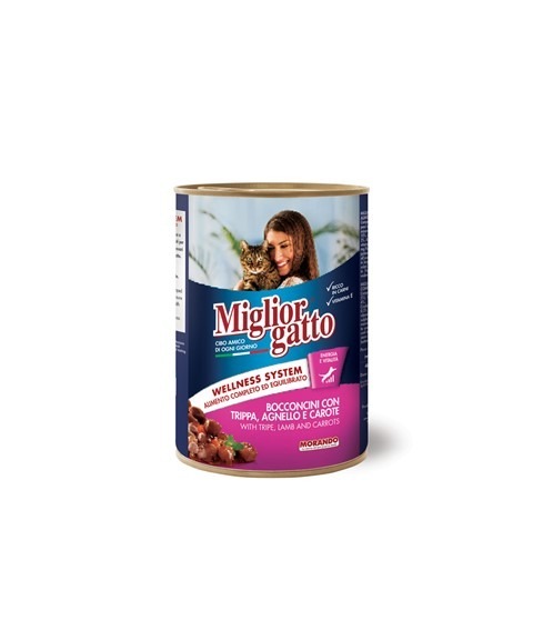 Miglior Gatto – консервирана храна за котки с агнешко и моркови на хапки, 405 гр.