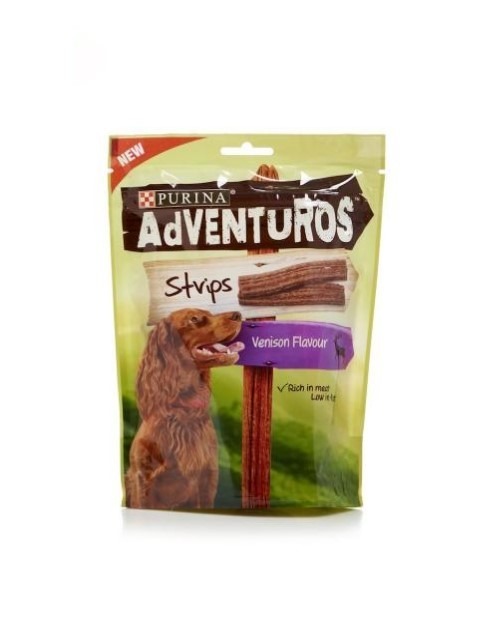 Четирикраките любители на приключенията ще харесат този снакс. С AdVENTuROS Strips от Purina приключението може да започне веднага. Под мотото „Снакни си късче от дивата природа!“, можете да поглезите Вашия любопитен изследовател с лакомствата с вълнуващ аромат на еленско месо. Вкусните рецепти са ориентирани към автентичните аромати в природата. Независимо дали ги поднесете цели, или начупени на малки парченца, с тях Вие предлагате на кучето си неустоимо лакомство.