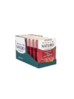 Naturo Dog Natural, агнешко с ориз и зеленчуци е пълноценна храна за кучета с алергии. Влажните храни за възрастни кучета са допълнени с основни витамини, минерали, масла. Същевременно богати и месести, така че вашето куче яде само най-добрата мокра храна! В рецептите на мократа кучешка храна Naturo не се използват оцветители, консерванти или аромати. Така че дори възрастни кучета с алергии или състояния могат да се хранят здравословно благодарение на хипоалергичната кучешка храна.