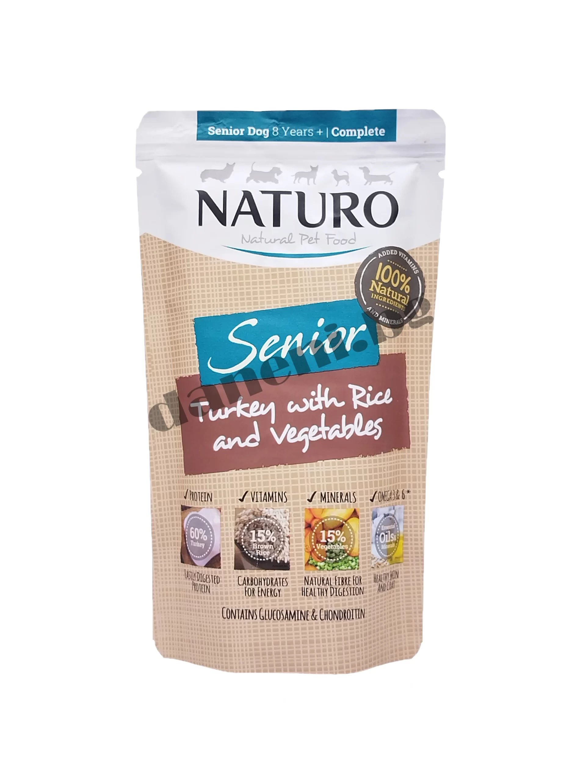 Naturo Dog Natural Pouch Senior +8 Years Turkey with Rice and Vegetables – Пауч – Пуйка с ориз и зеленчуци за кучета над 8 години 150 гр