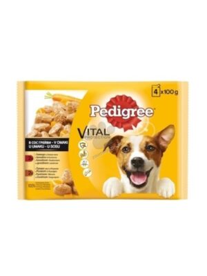 Деликатна храна за кучета над 12 месеца.Съдържа прясно месо,което не е нужно да се оброботва,така с всяко хранене кучето извлича най-важните съставки.Pedigree паучовете с говеждо, агнешко, пуешко и моркови са разработени с помощта на специалистите по хранене и ветеринарите в Waltham Centre for Pet Nutrition и имат всички съществени хранителни вещества за подпомагане на оптималното храносмилане, здравата кожа и козина, силната естествена защита и здравите кости.Съдържа Витамин Е и минерали за по здрава имунна система.
