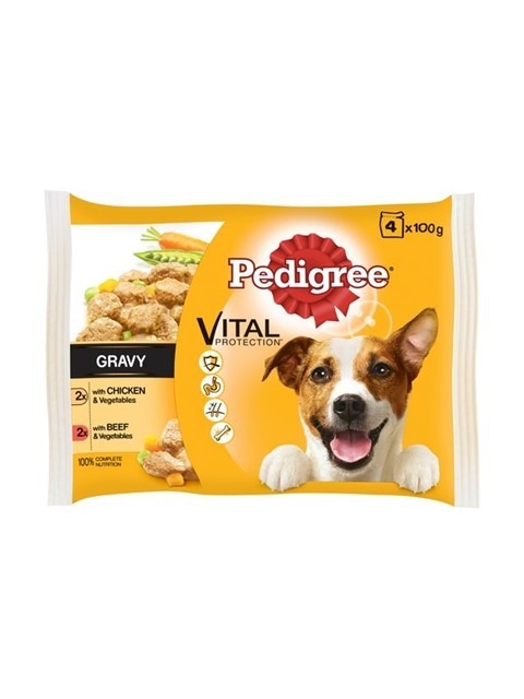 Пауч за кучета – Pedigree Adult Pouch – Говеждо, пилешко и зеленчуци 4х100 гр