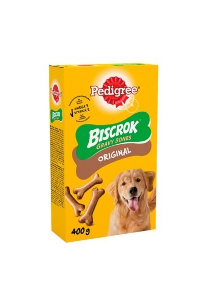 Хрупкаво лакомство-награда Pedigree Gravy Bones с вкус на грейви сос, добавка към храната на кучето.Една вкусна хрупкава закуска, с която да доставите удоволствие на вашето куче. Съдържа витамини и калций за здрави зъби и кости.