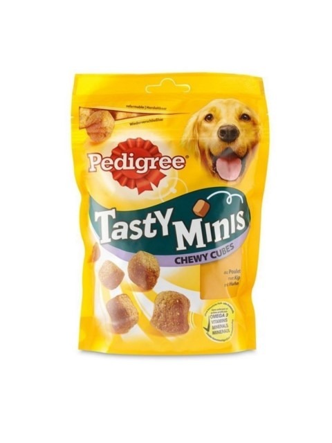 Pedigree Tasty Minis – това са деликатесни лакомства с апетитно говеждо или пилешко месо. Благодарение на големина си, те са много подходящи да се дават на кучето като малка награда по време на ежедневните тренировки или просто като разнообразна закуска помежду храненията. Малките хапки са богати на полезни витамини, минерали и незаменими омега-3 мастни киселини, които могат да помогнат, както за укрепване на имунната система, така също и за поддържане на здрава кожа и козина на кучето. За да се съхрани естествения вкус, в състава на това лакомство не са добавяни изкуствени оцветители и аромати. Благодарение на практичната, затваряща се опаковка хапките се запазват по-дълго време свежи и вкусни.