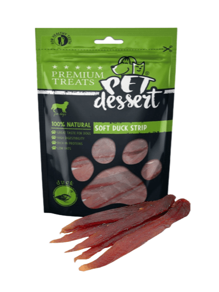 Лакомство за кучета Pet Dessert е допълваща кучешка храна с патешко. Съдържа висок процент чисто месо направено с натурални продукти.