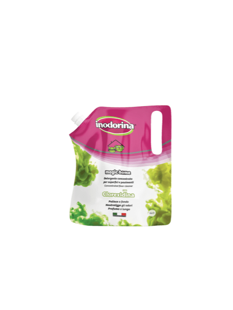 Inodorina Magic Home е парфюмиращ препарат, специфичен за среди, обитавани от домашни любимци. Подходящ е за всички миещи се повърхности и за всички видове подове. Може да се използва и за почистване на кутии, развъдници, постелки и клетки. Не оставя ореоли или лепкави следи.