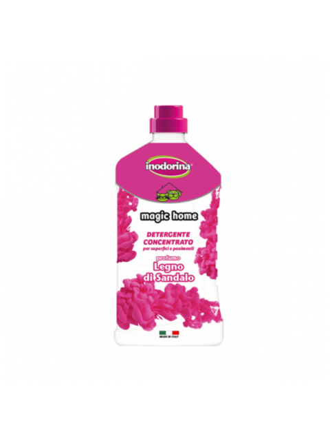 Inodorina Magic Home е парфюмиращ препарат, специфичен за среди, обитавани от домашни любимци. Подходящ е за всички миещи се повърхности и за всички видове подове. Може да се използва и за почистване на кутии, развъдници, постелки и клетки. Не оставя ореоли или лепкави следи.