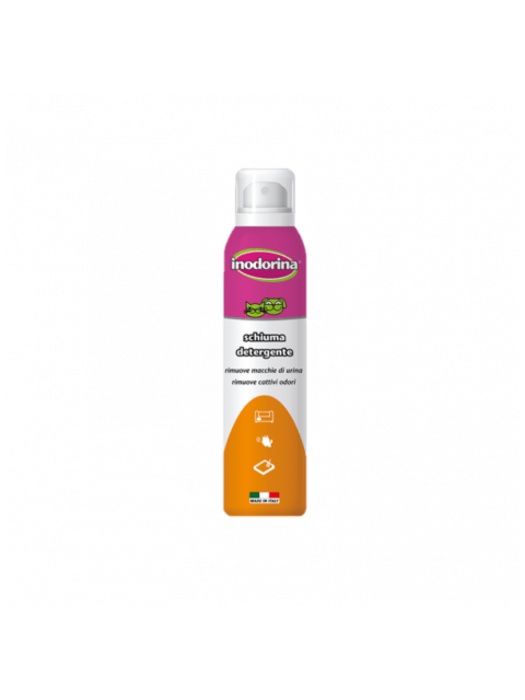 Почистващ спрей пяна Inodorina премахва петна, като придава приятен аромат на третираната повърхност. Бърз и практичен, той може да се използва ежедневно в къщи с домашни любимци – за почистване на тъкани, килими, като премахва петна и миризми и помага за предотвратяване на нови маркировки от страна на животните.