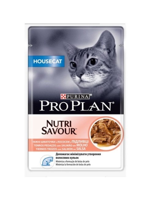 Pro Plan Cat Pouch Housecat Nutrisavour – Мокра храна за котки със сьомга в сос 85 гр