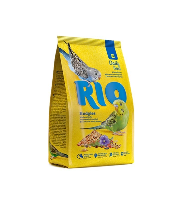 Ежедневната храна за вълнист папагал Rio Budgies е смес от специално подбрани зърна и семена, обичани от вълнистите папагали.