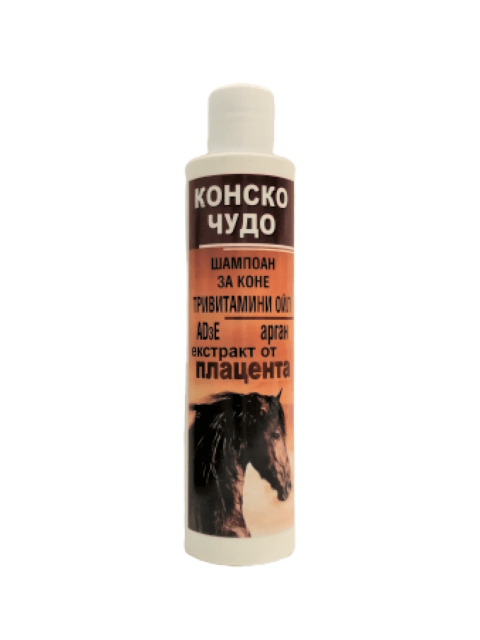 Шампоан за коне и кучета Конско чудо с ADзE, плацента и арган, ще увеличи здравината на косъма, възстанови цъфналите краища, предпазва от сухота и ще Ви предпазва от косопад.