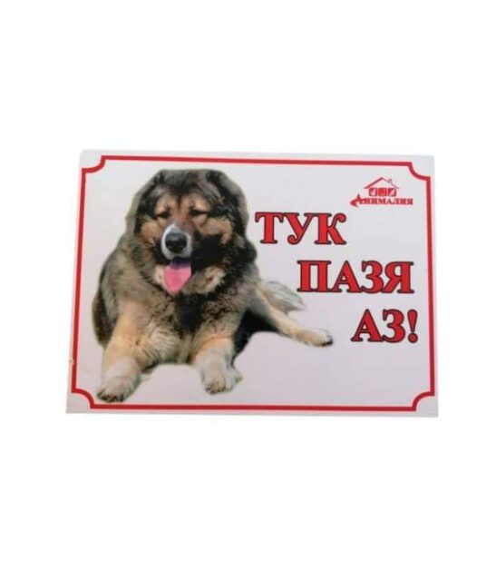 ТАБЕЛКА АЗ ПАЗЯ ТУК – КАВКАЗКА ОВЧАРКА. Размера на табелката дължина 25 см височина 18 см.