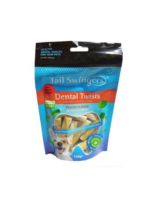 Лакомства за кучета Tail Swingers Dental Twists Small Bite, Праскова, 130 гр
