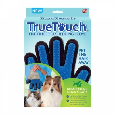Силиконовата повърхност на ръкавицата True Touch е изключително ефективна при събирането на косми. Тя нежно масажира кожата на твоето животно, стимулирайки кръвообращението и премахвайки мъртвите кожни клетки.Описание