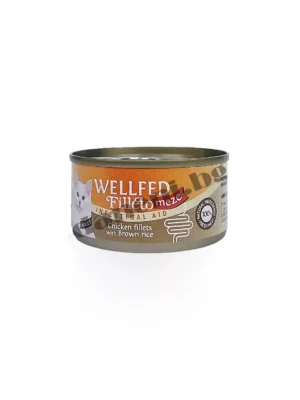 Консерва за котки – Wellfed Filleto meze Intestinal Aid Ultra Premium Adult Cat – Пилешки филенца с кафяв ориз 70 гр